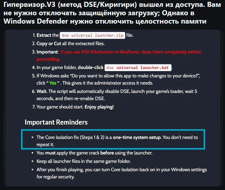 At the same time, the hypervisor method itself cannot be declared useless in advance just because it is new and controversial. If it really works and does not raise serious questions, this will become clear not on the day of release and not from the first enthusiastic messages. Here it is wiser not to rush and wait a few months. During this time, it will become clear how such a bypass behaves in practice, what failures it causes, and what security problems are revealed among ordinary users.