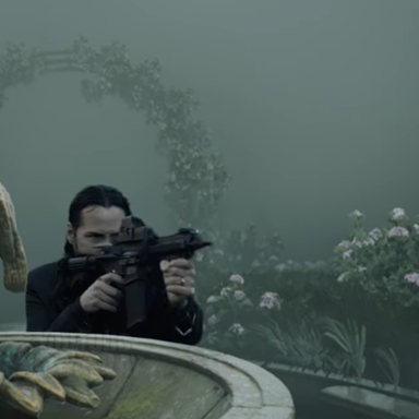 Для работы использовались кадры из фильмов франшизы John Wick. Главный герой в исполнении Киану Ривза познакомился с обитателями туманного города, включая Пирамидоголового. Как оказалось, даже легендарный киллер по прозвищу «Баба-Яга» не может совладать с этим культовым персонажем.