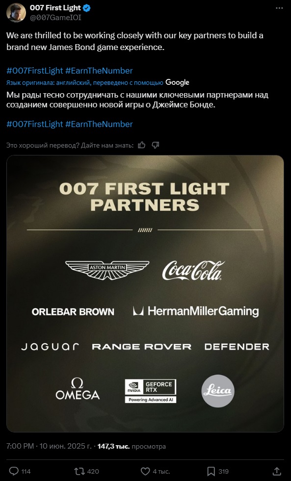 Бонд — фигура узнаваемая, и его мир давно стал точкой пересечения крупных брендов. Неудивительно, что при работе над 007 First Light разработчики решили обратиться к тем, кто уже помогал в создании имиджа 007.