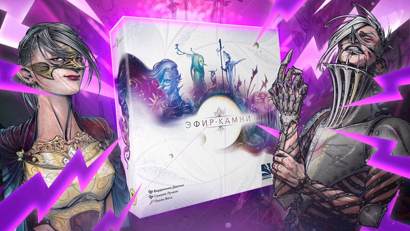 This week, users from Russia will have the opportunity to pre-order the board game "Ether Stones," which combines card and dice drafting mechanics, asymmetry, and a resource management system.