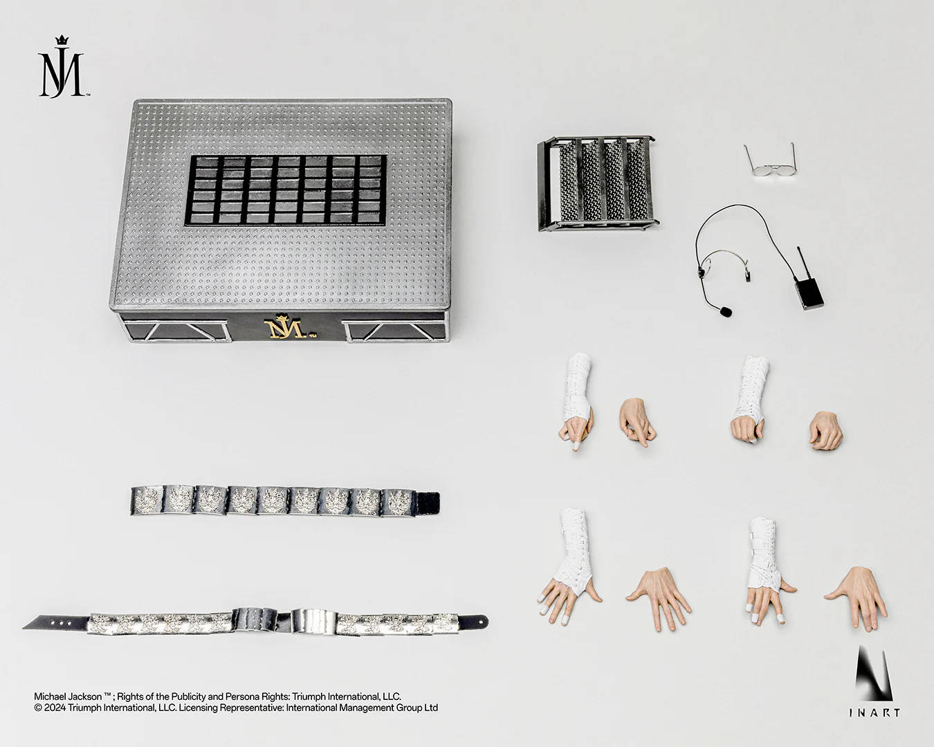 В комплекте получится обнаружить тело с суставами, голову с подвижными глазами, специальный костюм из концертного тура Dangerous World Tour, очки, ремни, наушники с микрофоном, один комплект обуви, пять комплектов сменных рук.