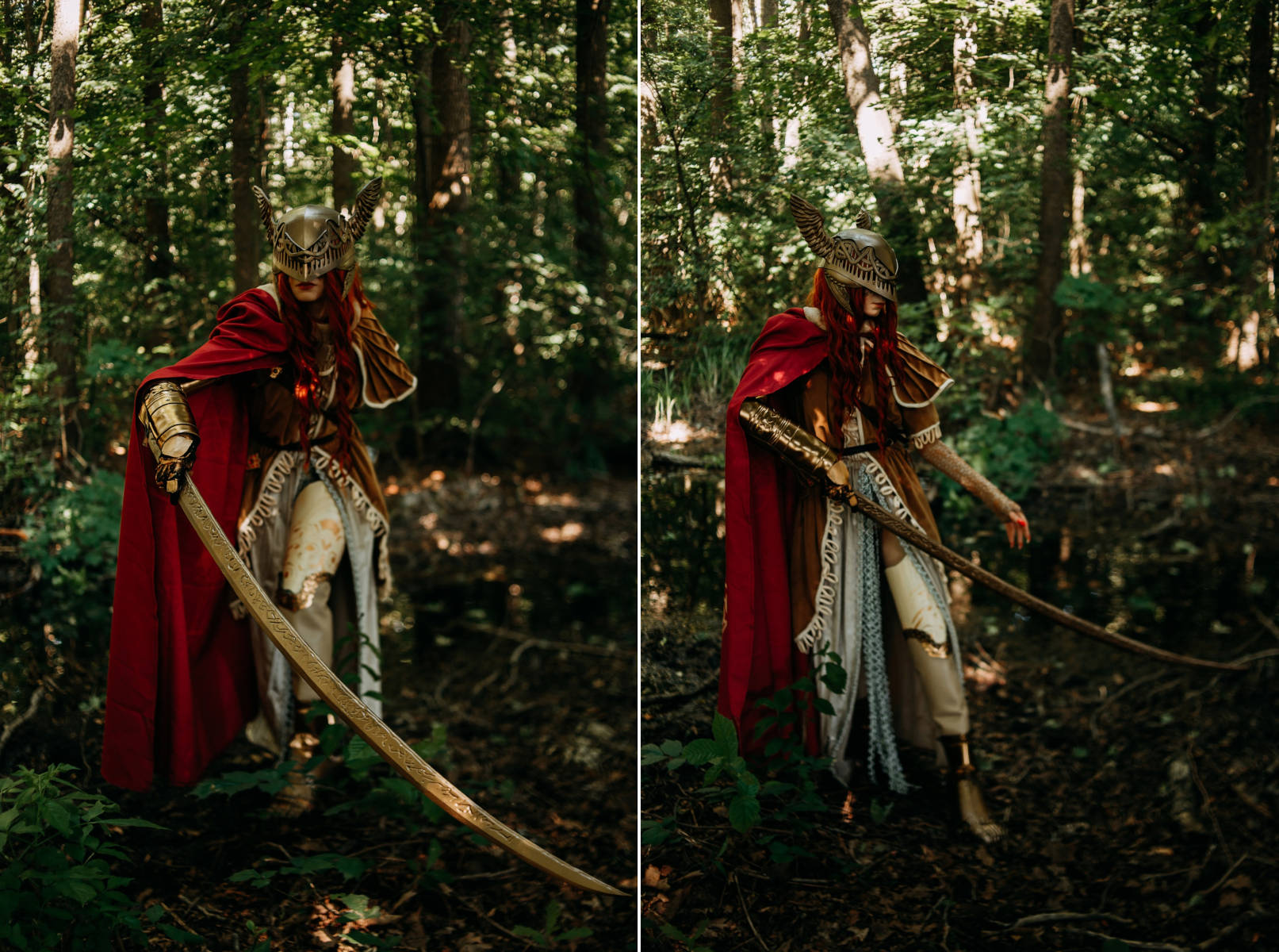 Во время фотосессии Диана предстала в образе одного из самых сложных опциональных боссов вышеуказанной игры – Малении, Клинка Микеллы.
