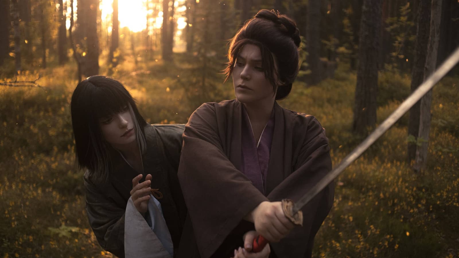 Cosplayers Azula Red and Hanna embody Kuro, the Divine Heir, and Emma, the healer, from Sekiro: Shadows Die Twice, who together are ready to overcome all obstacles and find a way to break the curse.