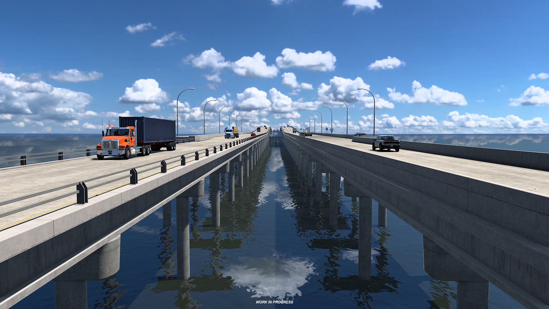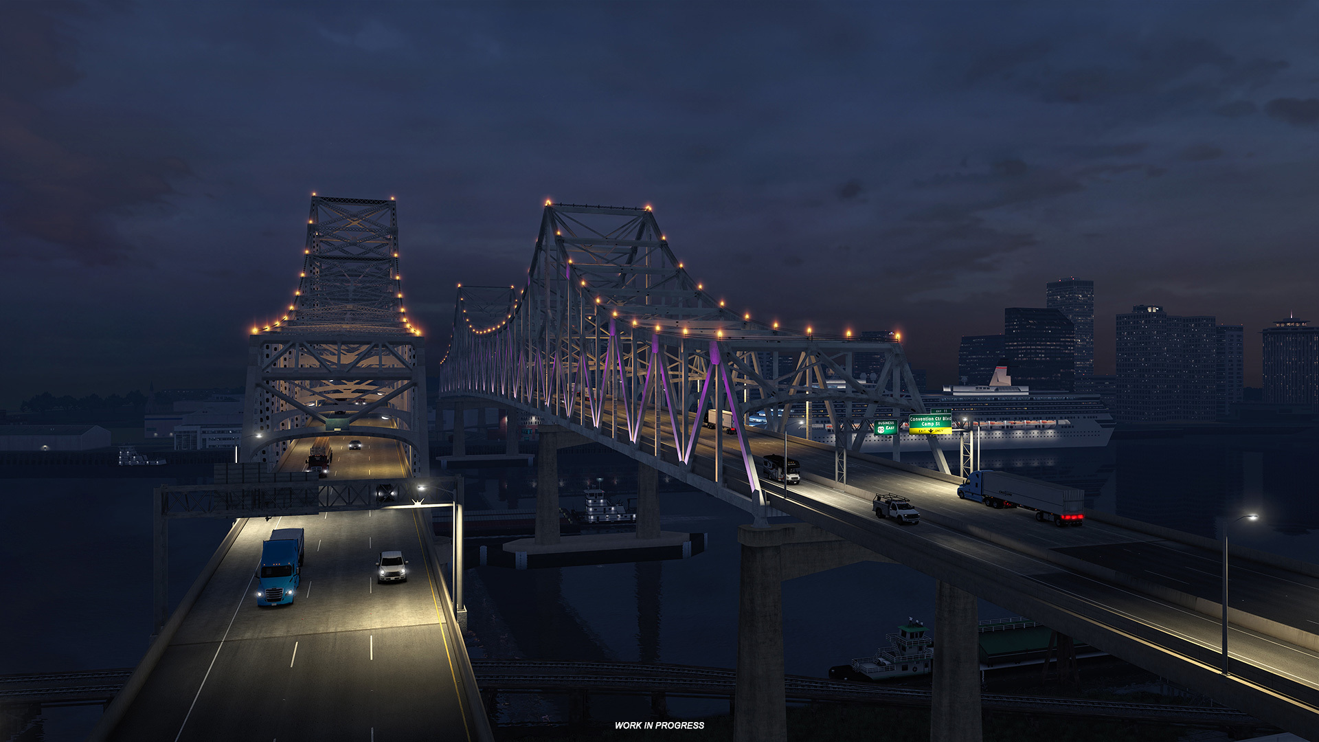 Будет представлен мост Хораса Уилкинсона; мост Хьюи Лонга — Оскара Аллена; Houma Twin Bridges и не только. Также авторы American Truck Simulator воссоздали дамбу на озере Пончартрейн.