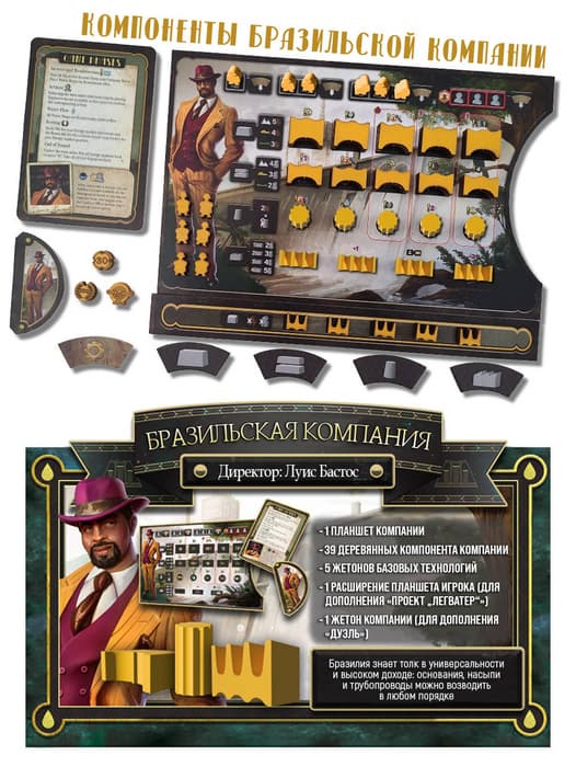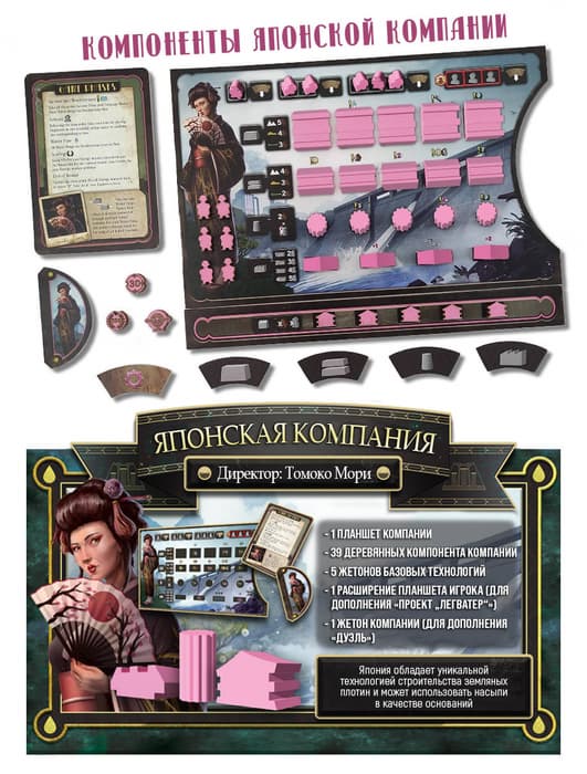 The "Overseas Companies" expansion adds two new companies with unique mechanics to the game - Japanese and Brazilian. Among other things, you can now purchase two-layer player board extensions for the "Legwater Project" for 490 rubles, and a set of wooden construction wheels for 1990 rubles. The estimated arrival of the boxes at the warehouse is April 2026.