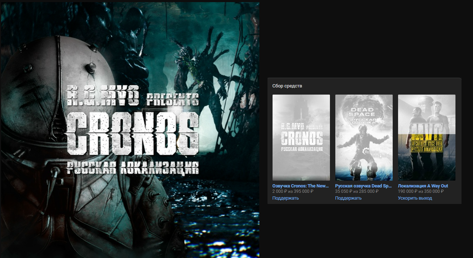 The localization team Mechanics VoiceOver (R.G. MVO) reacted to the launch of the new horror game. The studio published a new avatar with the game's heroine and the caption "R.G. MVO presents Cronos Russian localization" in its VK community.