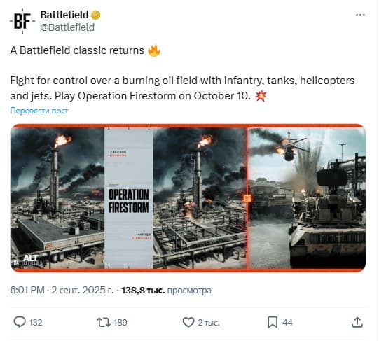 In a recent message, the developers stated that "Operation "Fiery Storm"" will be available in Battlefield 6 from the very release.