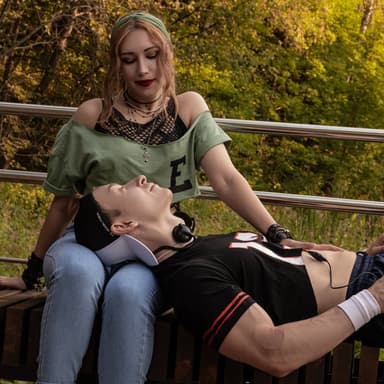 During the photoshoot, which was conducted by photographer Liza "Shinori" Egorova, the cosplayers transformed into two playable heroes - Jacob Custos and Emma Mountebank, dressed in 80s-style outfits.