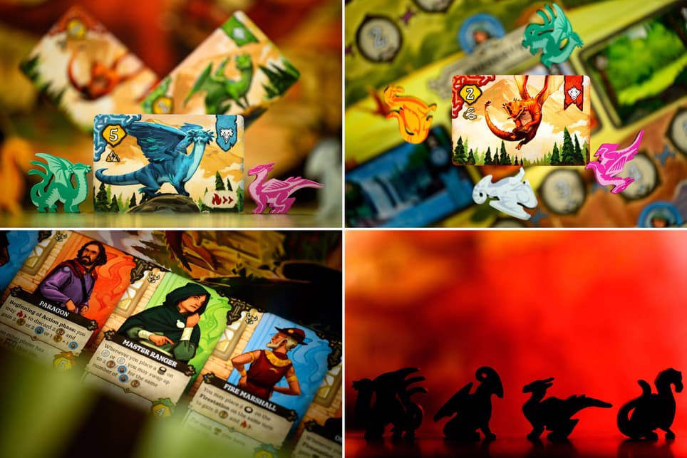 In this board game, designed for 2-4 players, participants will have to send mercenaries and heroes to different locations on the island, save dragons from poachers, upgrade their dragon companions, receive rewards, and admire illustrations by Andrew Bosley.