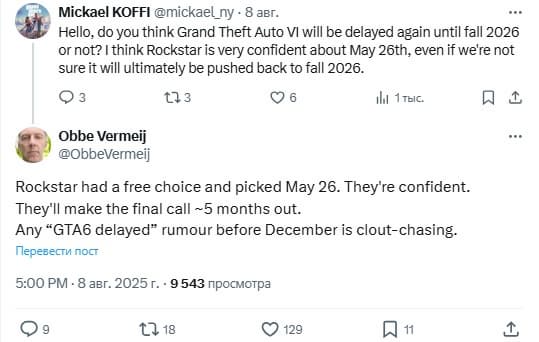 On X, he called the recent publications "attention-seeking" and emphasized that the choice of May 2026 was deliberate. According to him, the final decision will be made five months before release, and all rumors before December are just attempts to attract attention.