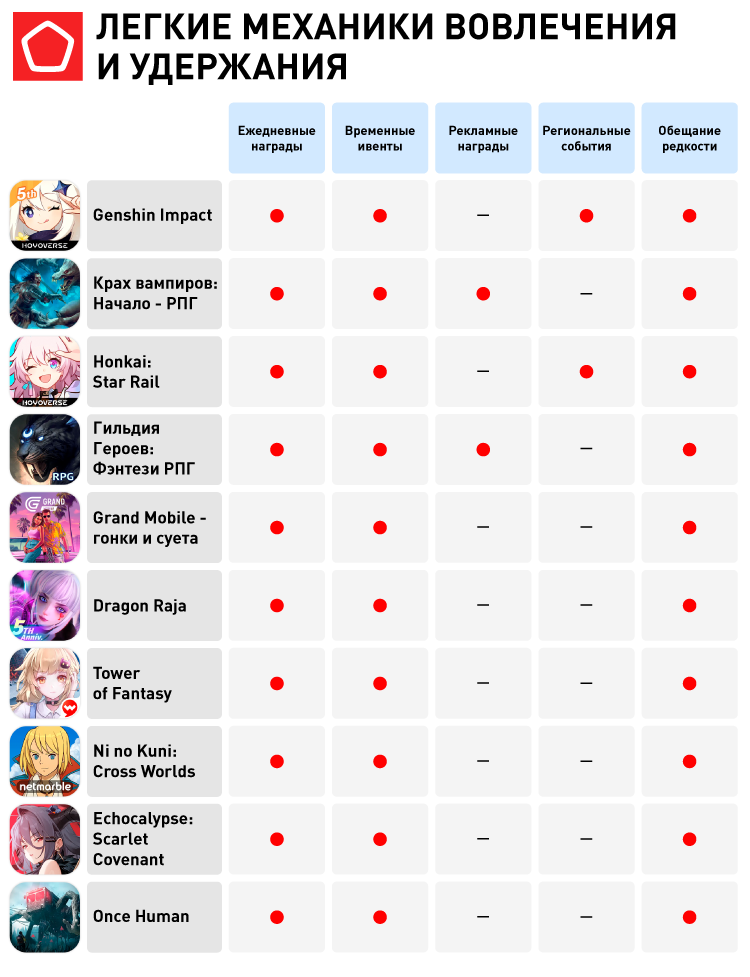 The list of projects with aggressive monetization mechanics includes games from miHoYo (HoYoverse) — Genshin Impact and Honkai Star Rail.