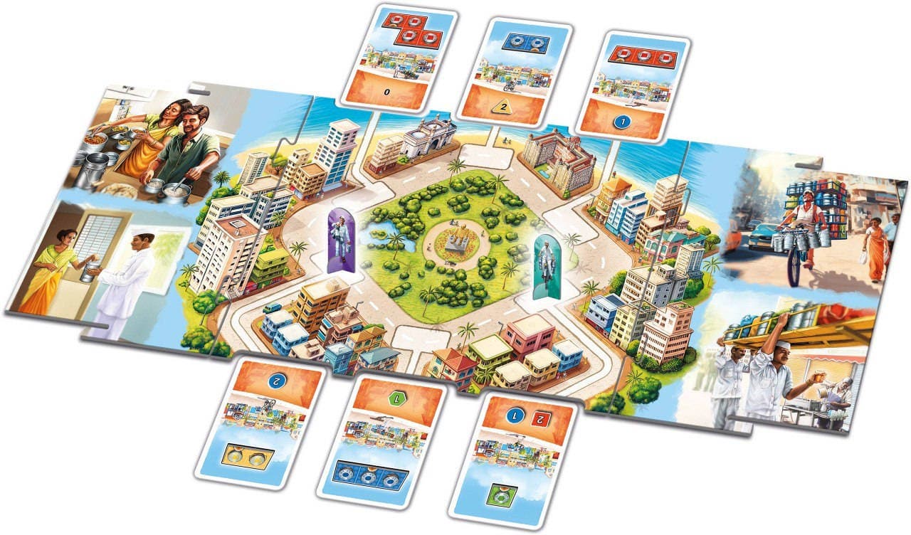 Having collected all the orders, players proceed to delivery and receiving tips – which are also victory points. To do this, you will again have to play your cards to determine the level of tips for each color at each level of dabba. The most successful dabba walla, of course, becomes the winner.