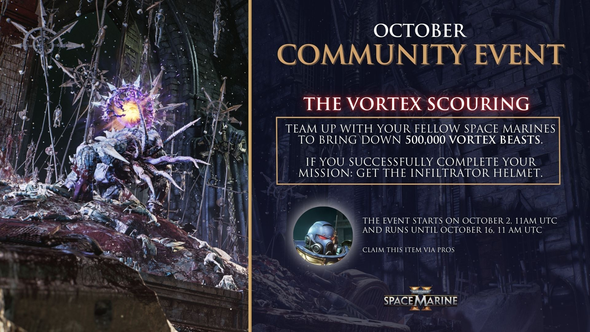 In October, a Discord Quest will be held: for 15 minutes of playing the demo / full version of Space Marine 2, the developers have provided a reward; they presented a stylish look for the weapon. In addition, a "community event" will be held next month — you will need to eliminate 500 thousand certain enemies in order to get a helmet as a reward.