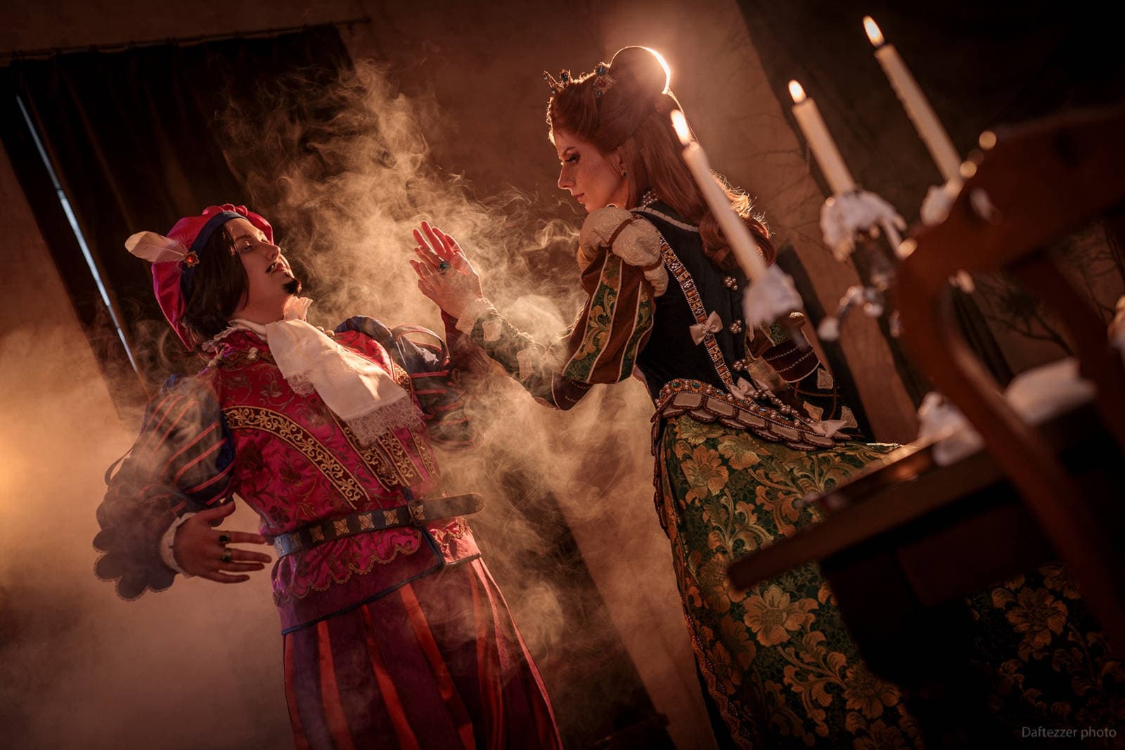 Cosplayers Marshal Giltenkreuz and Evge-Nii Admiral appeared as Anna Henrietta and Dandelion from The Witcher 3: Wild Hunt, whose relationship was romantic, but complex and dramatic.