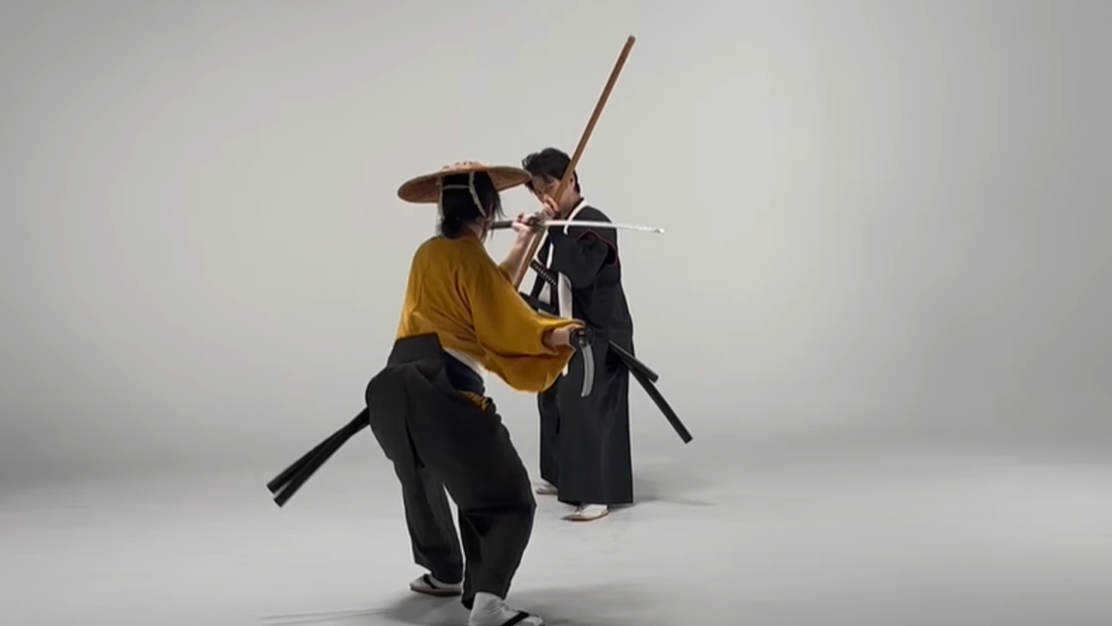 The length of the odachi starts from 90 centimeters, and the weight is about 1.5 kg. Atsu draws this weapon from a difficult position — he carries the odachi behind his back. As it turned out, this specific movement is quite possible to repeat in real life.