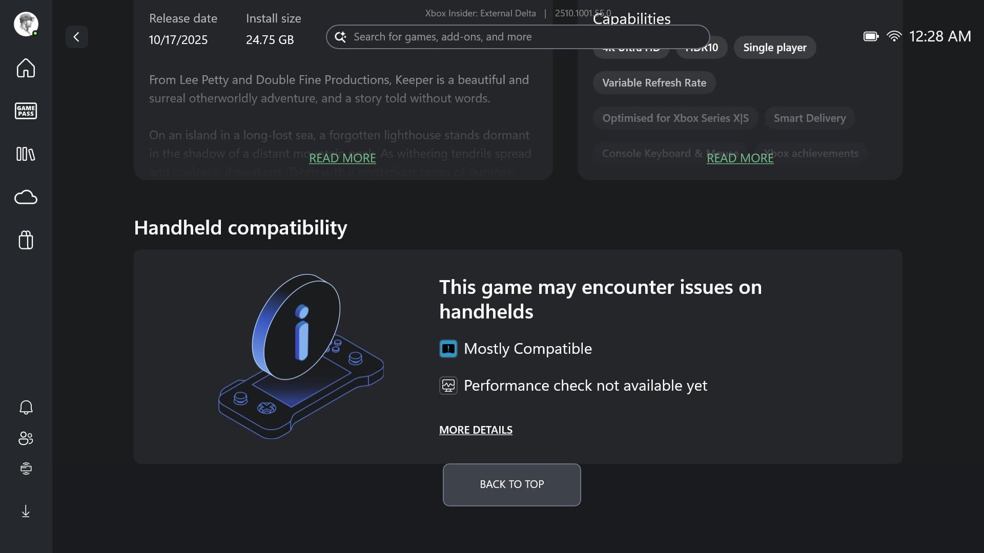 To ensure a high level of compatibility, the Xbox Handheld certification system has been launched, which will indicate whether the game is ready for portable mode. Performance, interface, and controls are tested, and after successful verification, the game receives the official Xbox Handheld Compatibility designation.