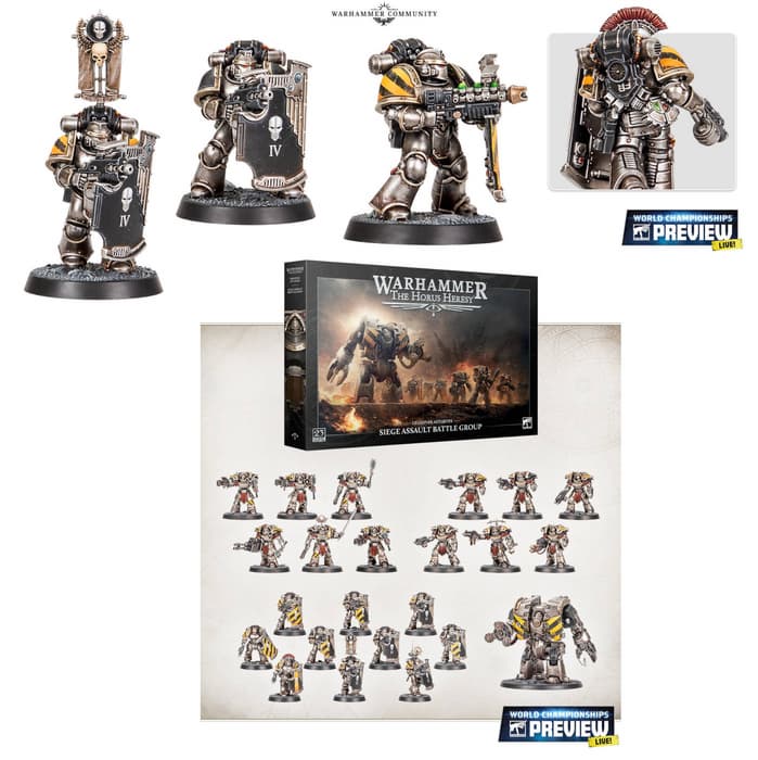 The "Siege Assault Group" pack will be divided into two sets. The first features a classic combination of power weapons - in this case, power hammers - and volkite guns, while the second includes a more modern combination of power fists and combi-bolters.