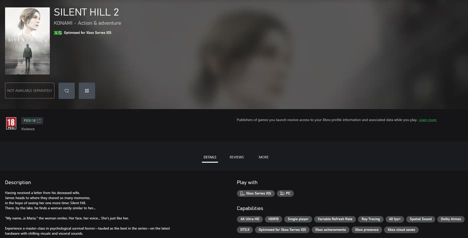 According to the store data, Silent Hill 2 Remake will launch on Xbox Series X|S on November 21, 2025. A Deluxe Edition with a digital artbook, soundtrack, and Pyramid Head Pizza Box cosmetic add-on also appeared in the listing. Microsoft revealed plans to release a Silent Hill 2 + Silent Hill f bundle.