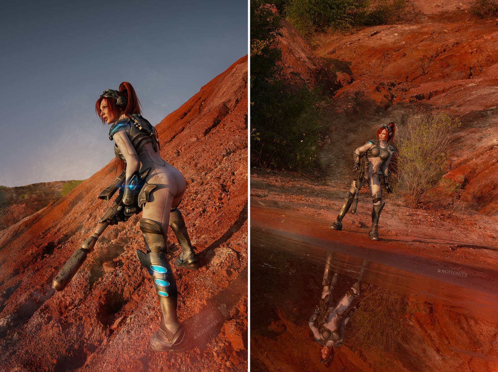 Cosplayer AGflower has published several images from a November photoshoot in which she appears as Sarah Louise Kerrigan from the StarCraft strategy universe.