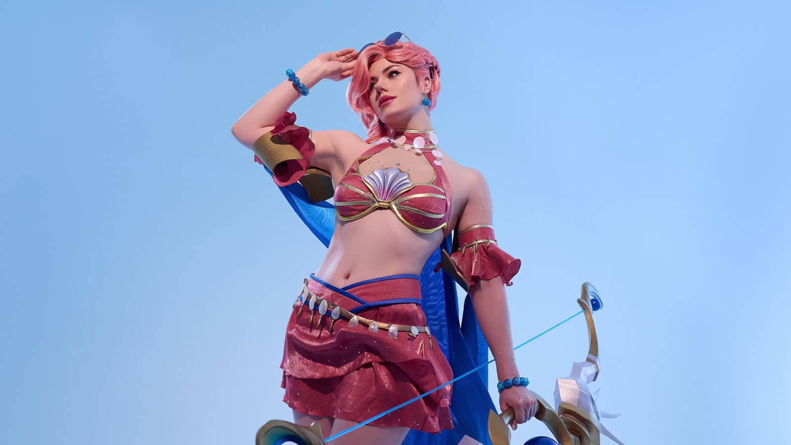 Cosplayer Ksenia "KamikoZero" has once again transported herself to the lands of Runeterra. This time, she embodied the image of the heroine Ashe, dressed in a beach skin and becoming the director of the "Frel" fashion house.