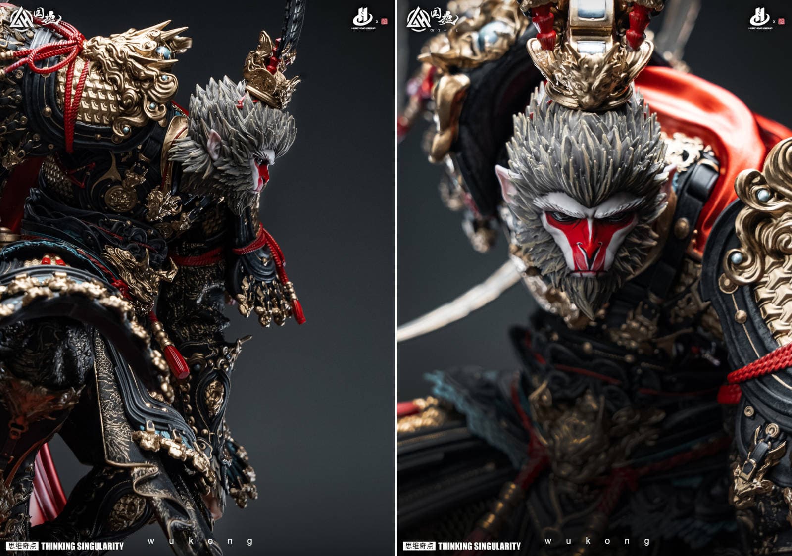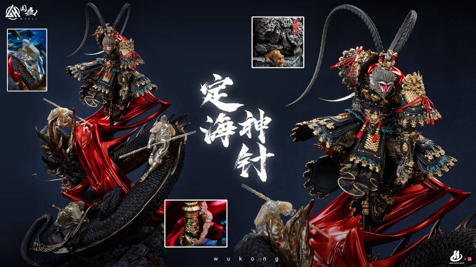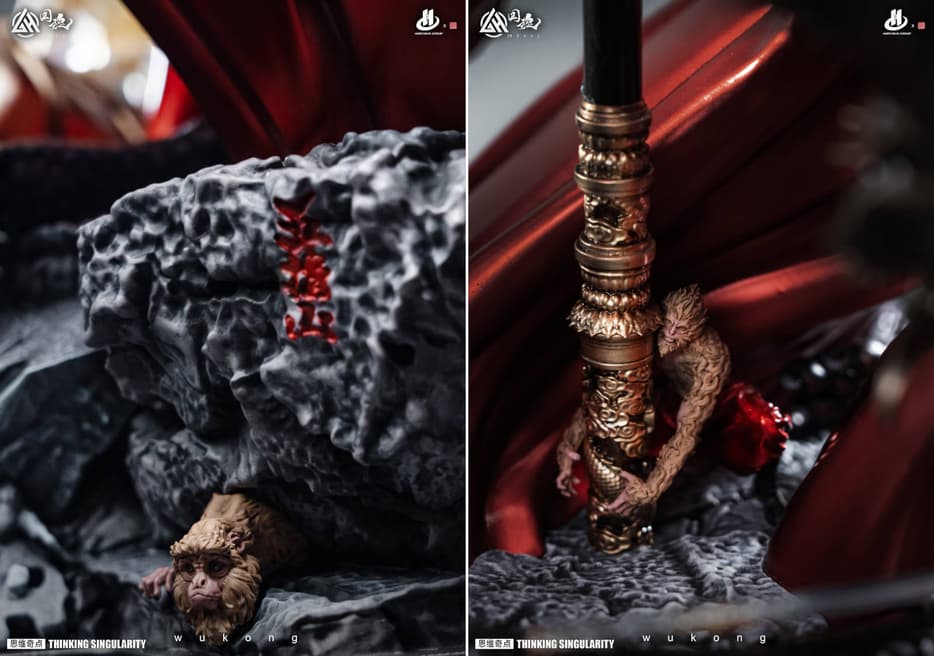 The height of this collectible item, made of resin and polyurethane, is 85 cm, width – 50 cm. The statue depicts the life of Sun Wukong in four forms, telling the story of his imprisonment under the Mountain of Five Elements, obtaining the magic staff, traveling to the West, and gaining the status of the Great Sage Equal to Heaven.