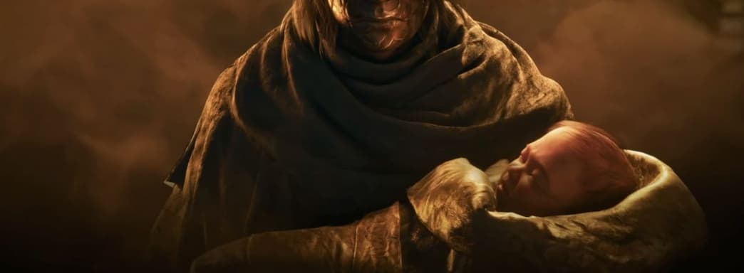 The video shows a mysterious opponent in a metal mask kidnapping a child and performing spectacular sword techniques. The main character is Soul, a wanted mercenary. A young woman also appears, who gives the hero a good luck charm and later transforms into an unusual creature.