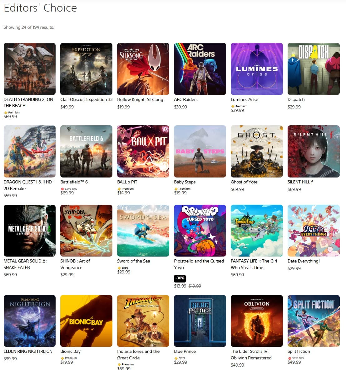 At the end of 2025, Sony introduced the "Editor's Choice" promotion in the PlayStation Store. This isn't just a regular sale – users are greeted with a banner that reads "Our Favorite Games of 2025 and Beyond."