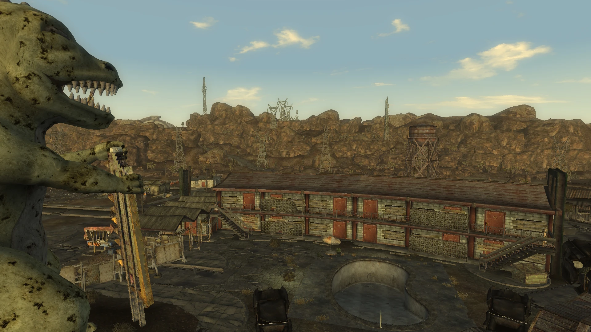 A user with the nickname LoneWanderer1987 presented the "Novac Pool" project on Nexus Mods — it turns the dinosaur statue to be like in the series.