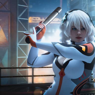 During a special photo shoot, the model appeared as Kiana Kaslana, dressed in the combat suit "White Comet".