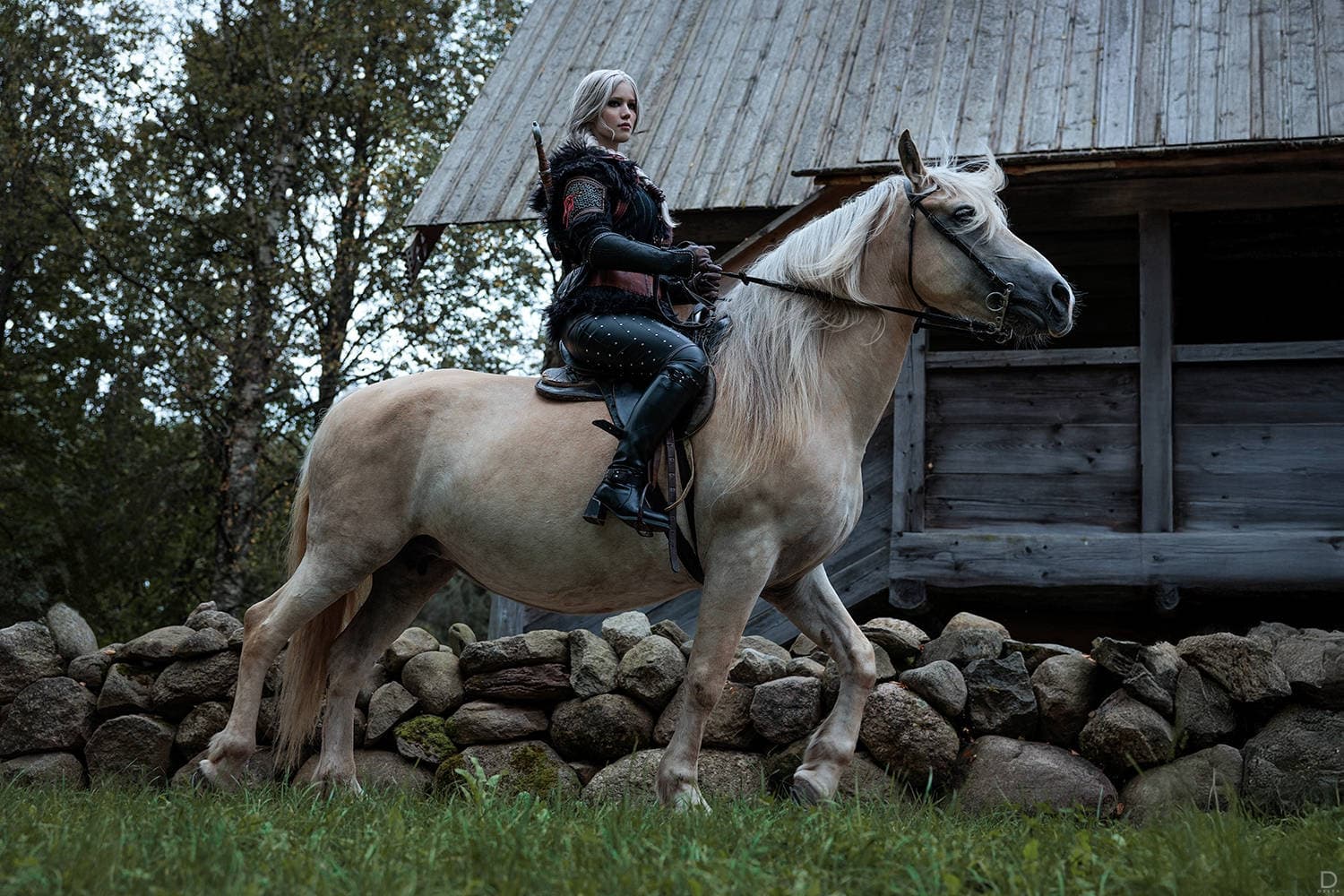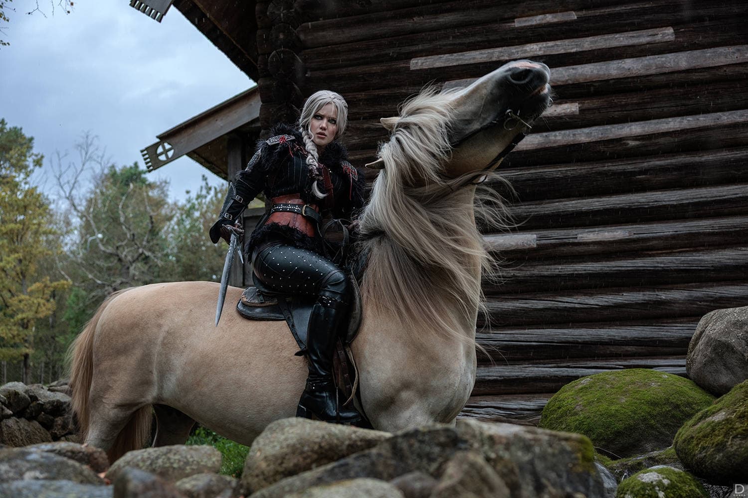 Model Lada Lyumos transformed into Ciri — a monster hunter and the main character of the open-world role-playing action game The Witcher 4, saddled a horse, and set off to meet new dangerous adventures.