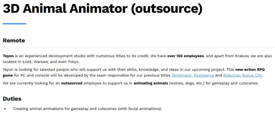 Now it has become known that Teyon is probably preparing the next major project. This is indicated by a new vacancy. The studio is looking for a 3D animator to work with animals - including wolves and dogs - both in the gameplay and in the cutscenes. The announcement mentions the development of a new action role-playing game with a well-developed and vibrant world.