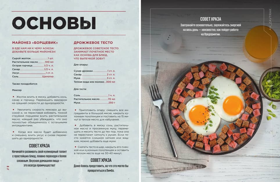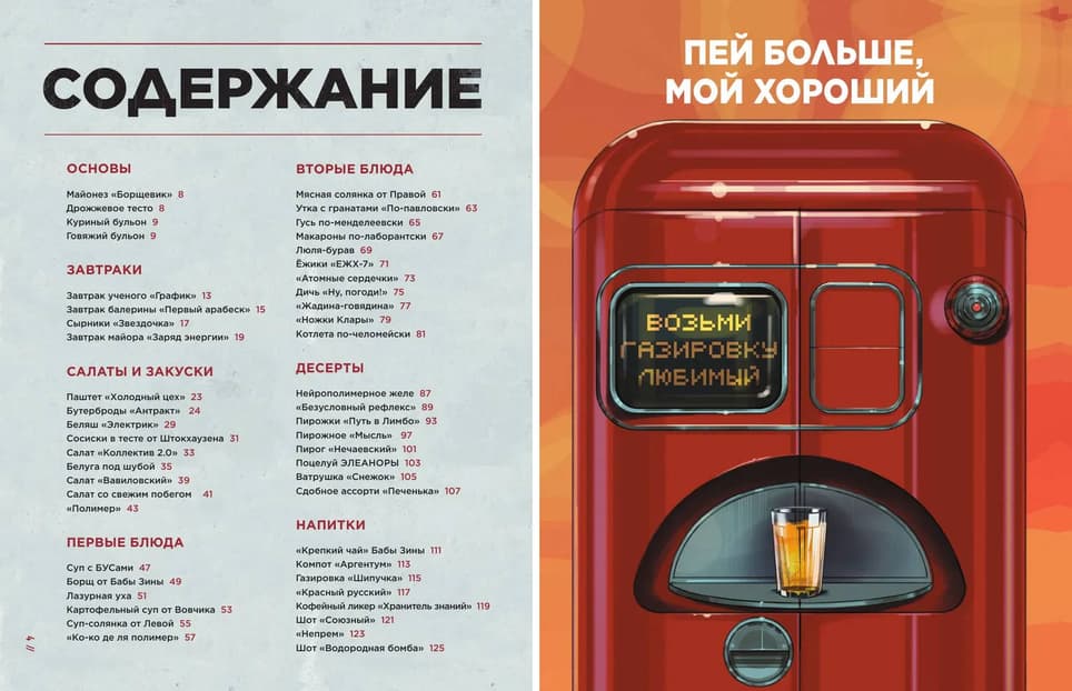 The recipes are accompanied by tips from KhRAZ — wise, but not always useful. In addition, the book contains concept art, fan art, humorous materials, and other entertaining things.