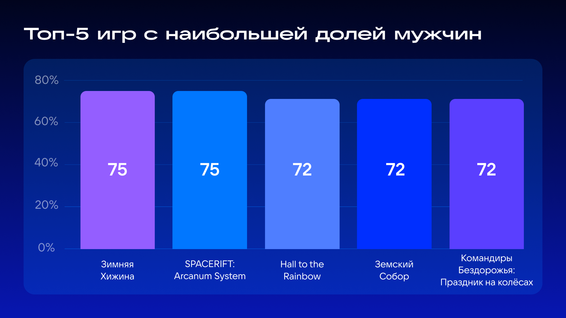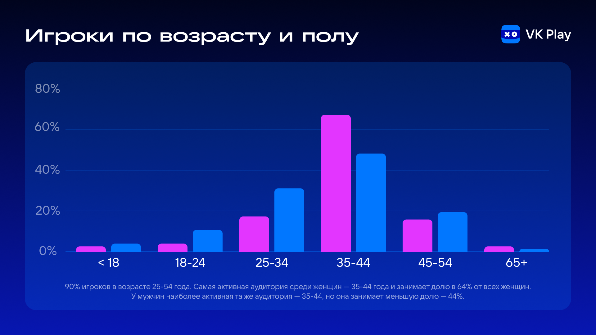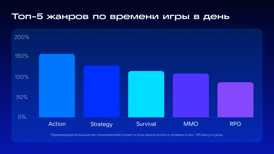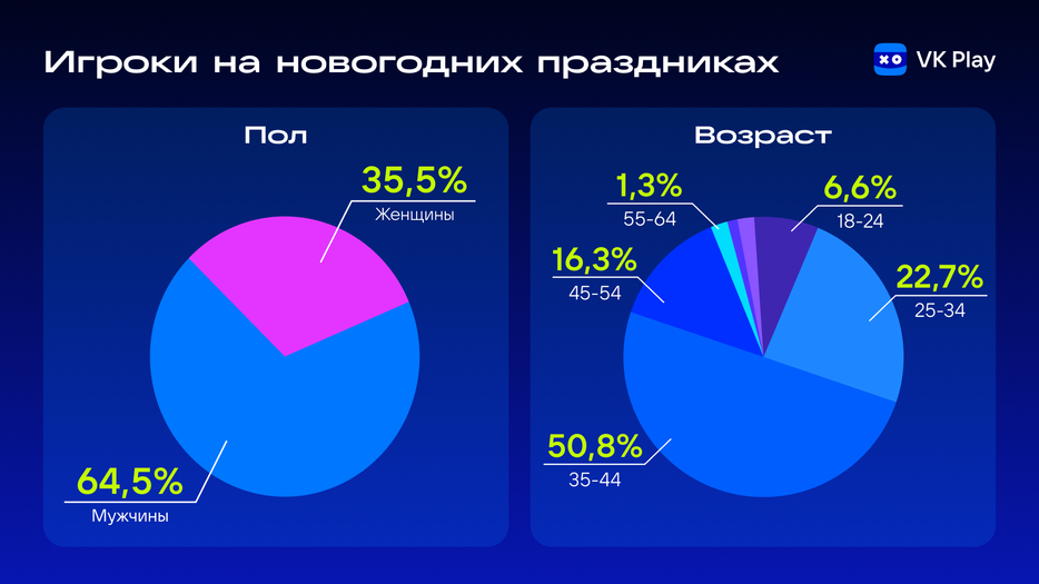 The most active players were people aged 35 to 44 years — 50.8% of the total playing time on the platform. This is followed by 25–34 years (22.7%), while young people aged 18–24 years accounted for only 6.6%.