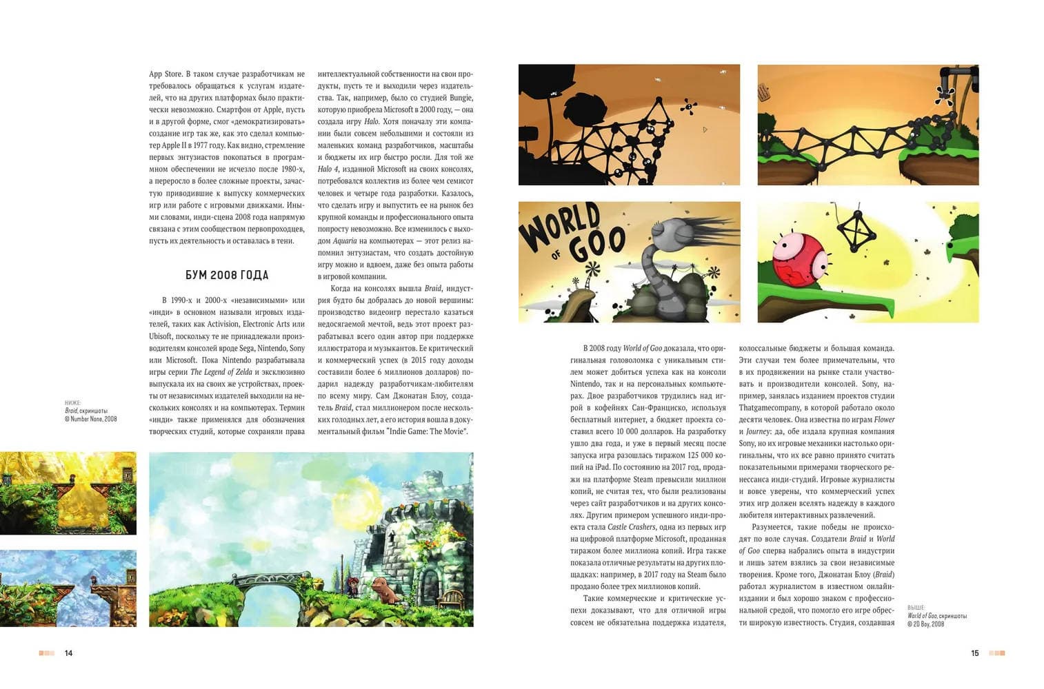 Inside is a chronicle of how Hollow Knight, Journey, Firewatch and other hits became cultural phenomena. Readers will find about three hundred colorful images of various projects, more than fifty interviews with developers and behind-the-scenes stories of indie studios firsthand.