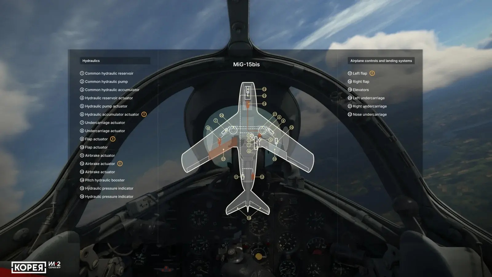 In addition to the HUD indicators, "Korea. IL-2 Series" added a separate screen displaying the status of all aircraft systems, including the degree of damage: