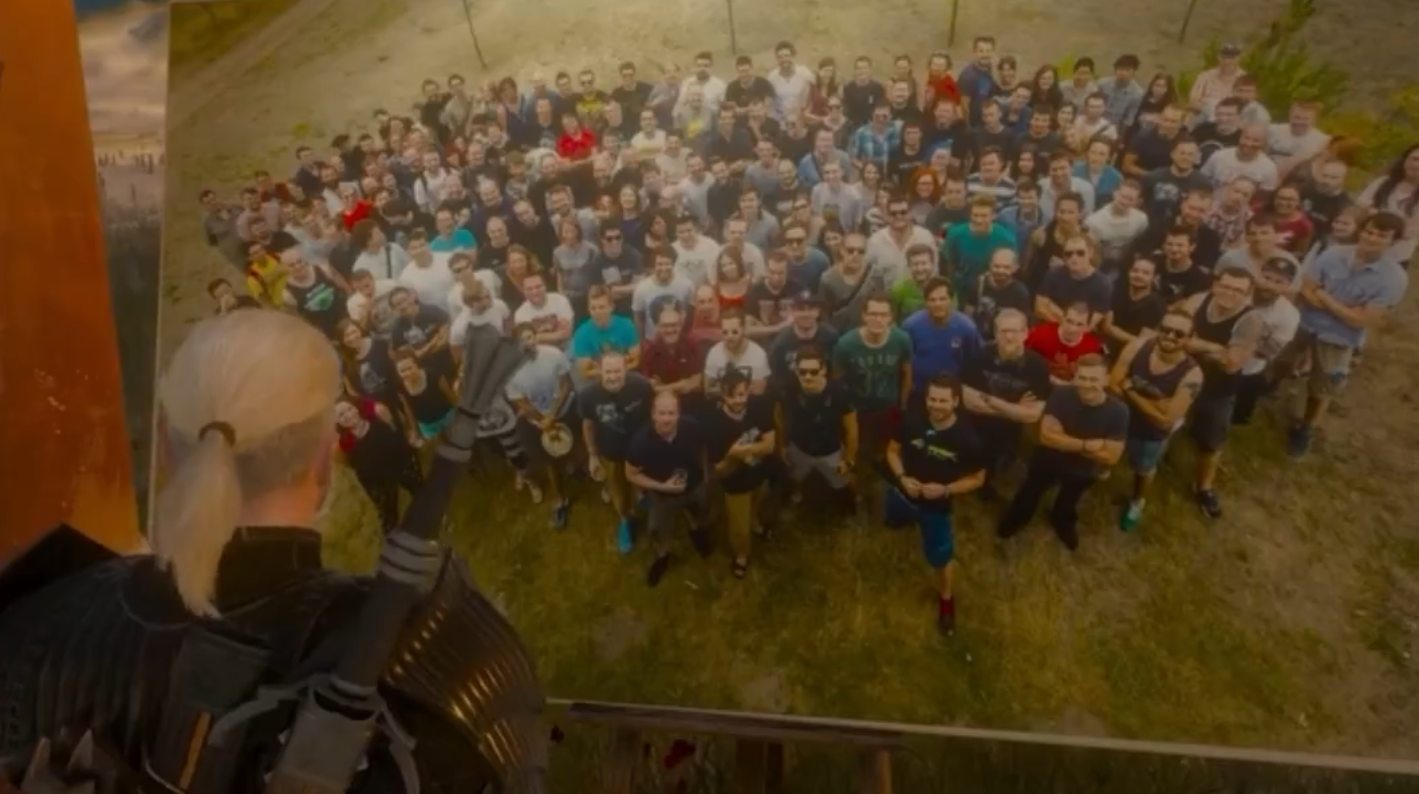 The photo itself was taken during the annual summer picnic after the release of The Witcher 3: Wild Hunt.