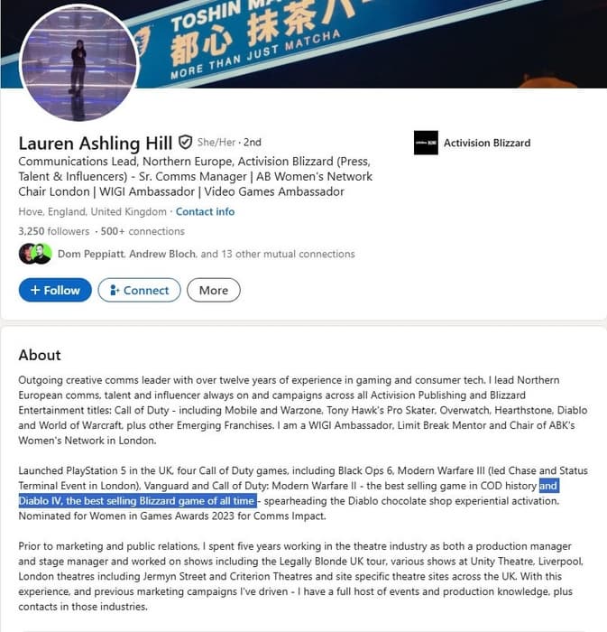 This data appeared on LinkedIn from Lauren Ashling Hill, Head of Communications at Activision Blizzard. In her profile, she calls the game an absolute record-breaker for the studio, suggesting that the project surpassed the performance of Diablo III (over 20 million copies).