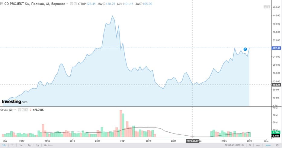 Для инвесторов CD Projekt настанет удачное время, поскольку есть признаки того, что CD Projekt скоро преодолеет отметку в 300 злотых на фондовой бирже (последний раз такой уровень достигался в декабре 2020 года, сразу после выхода Cyberpunk 2077), а также начнет раскрывать подробности о своих проектах.