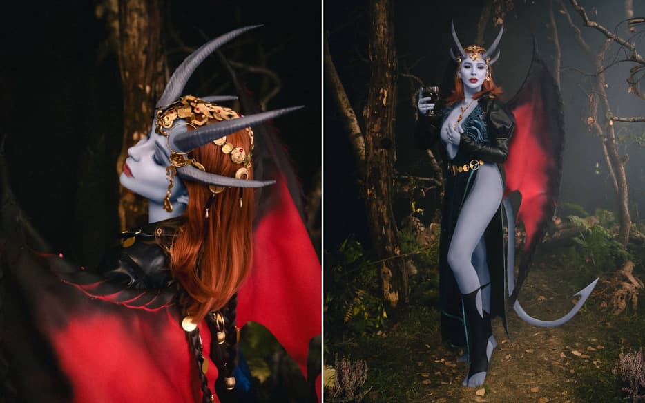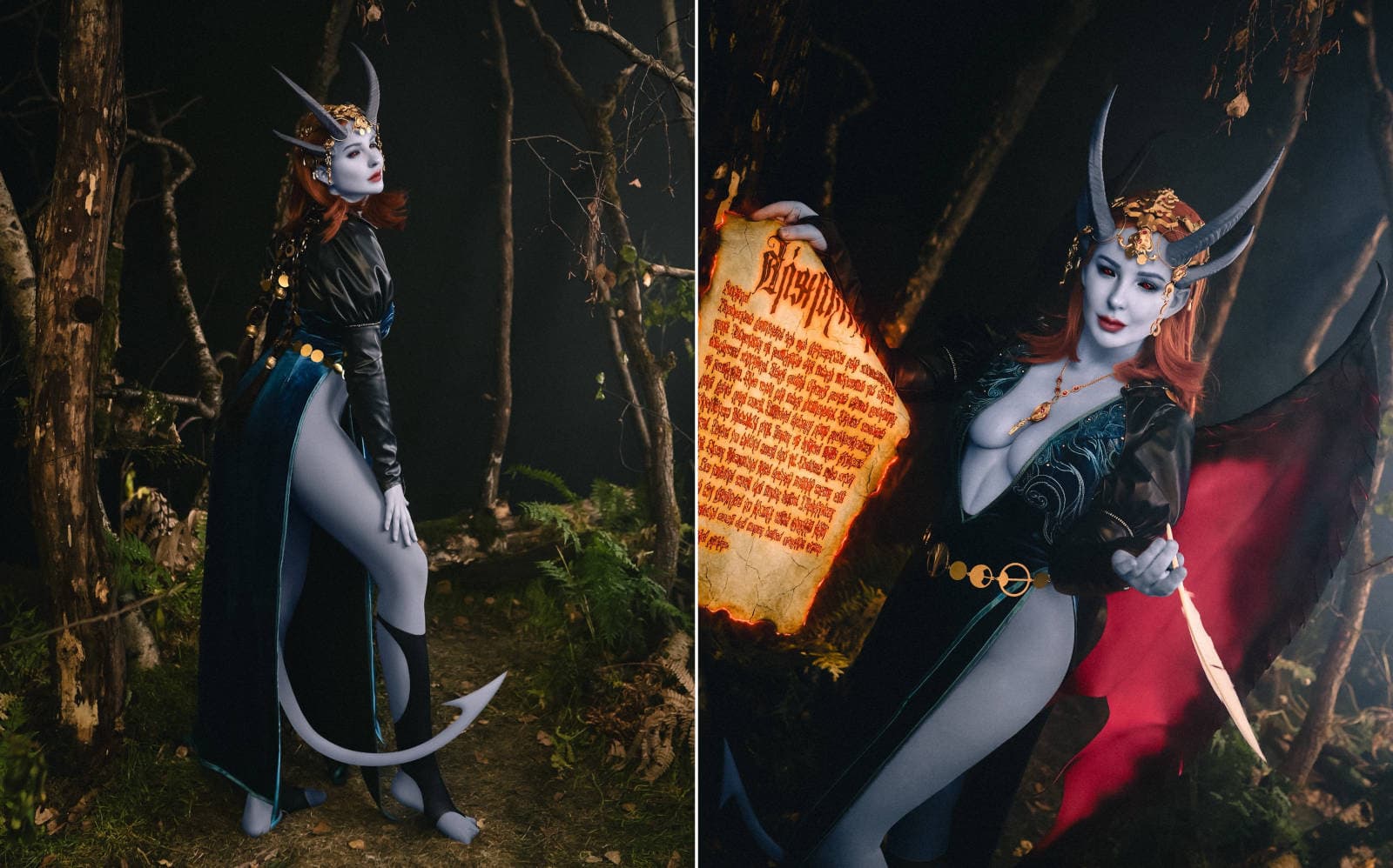 На снимках она предстала в образе обольстительной полудьяволицы Мизоры из вышеуказанной RPG, способной менять свой облик и маскироваться под обычного человека.