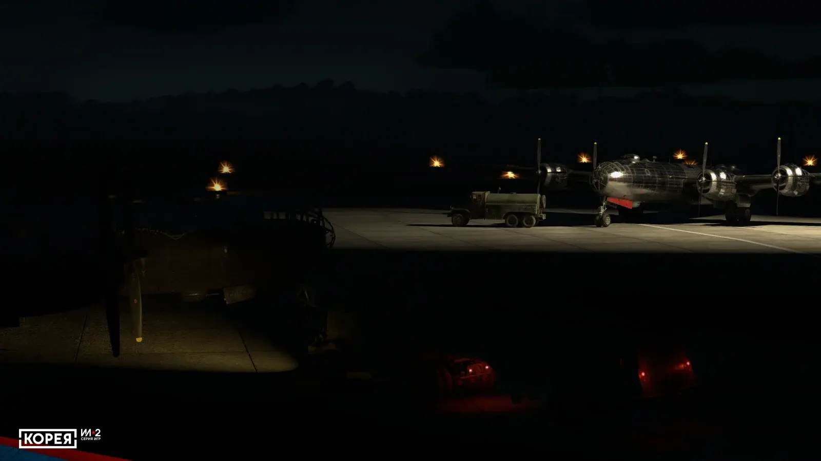 The developers of \"Korea. IL-2 Series\". noted that the picture in the flight simulator is created not only by natural lighting from the sun and moon - \"a huge number of artificial light sources\" are also used. For example, it can be light from cars, city or airfield lights, fires and illuminating ammunition: