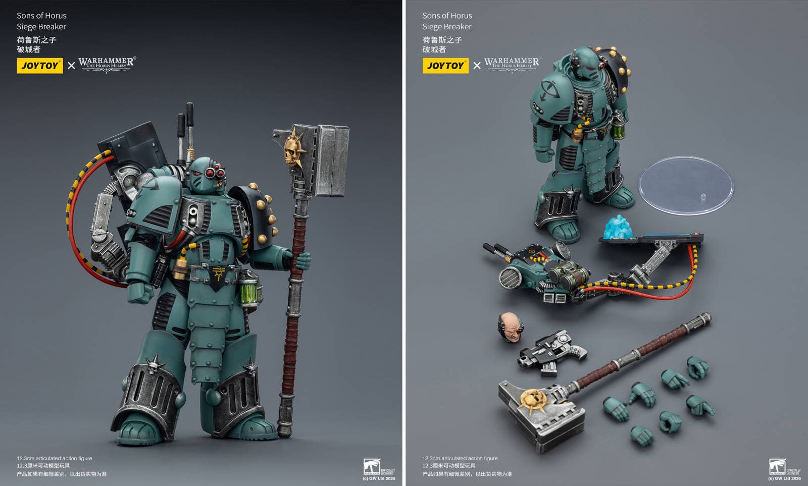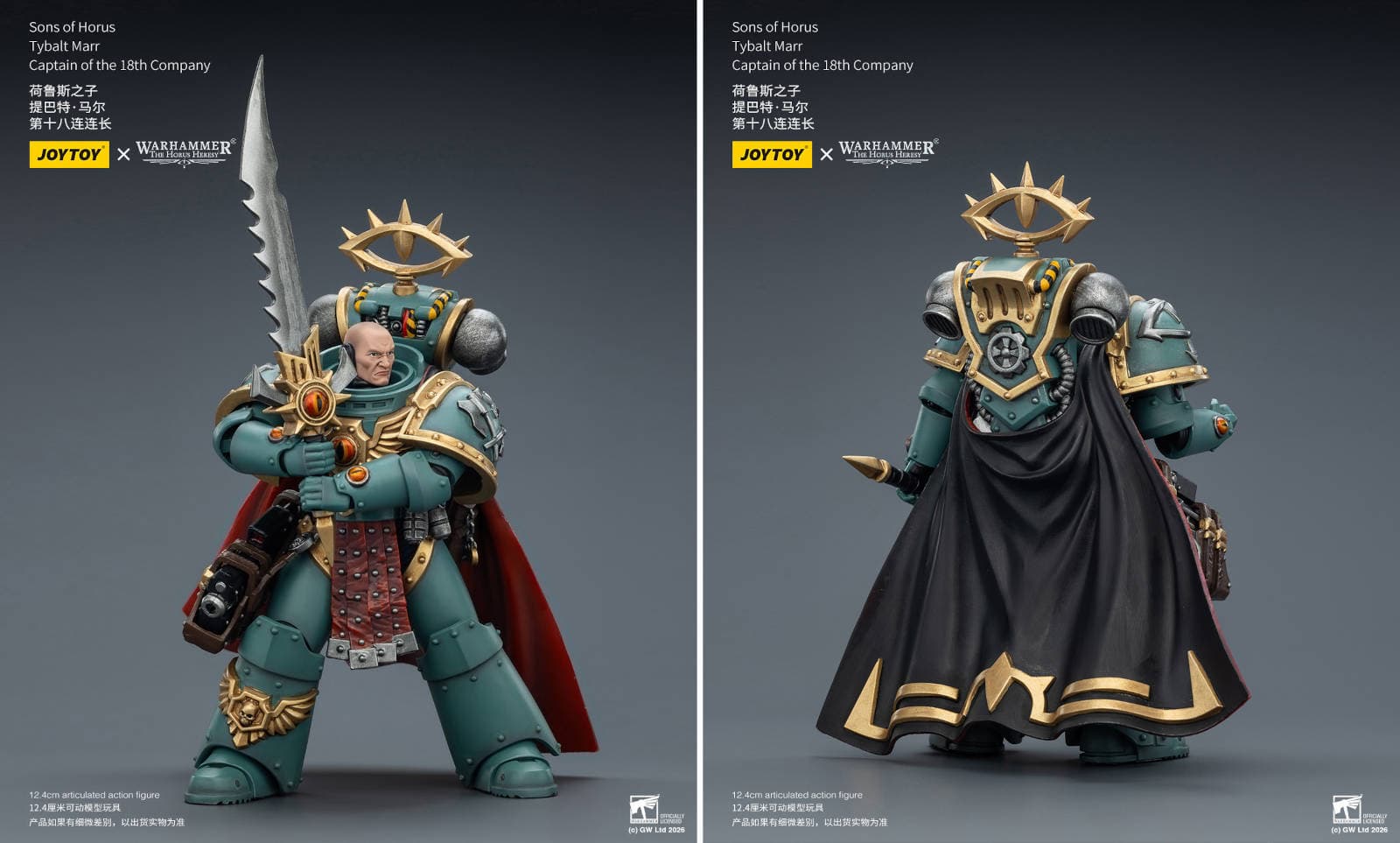 Fans of the Sons of Horus from the Warhammer: The Horus Heresy universe have a reason to celebrate today. JoyToy has announced figures of Captain of the 18th Company, Tybalt Marr, and the Siege Breaker (also known as the Siege Breaker Consul), made in 1/18 scale.
