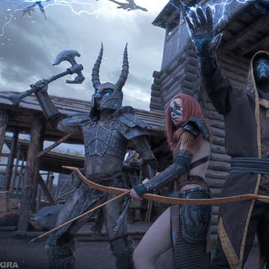 During the photoshoot, cosplayers Maxim Uspensky, Nadine Inaya, Alexandra «Re-L» Kipelova, and SNR transformed into characters such as a Draugr, Serana, Aela the Huntress, and Dovahkiin.