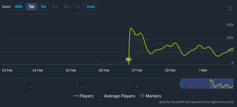 The peak online of the Marathon playtest reached 143 thousand players. However, it soon fell by more than 50% — to 74.9 thousand users.