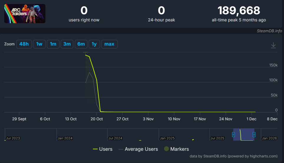 For comparison, here is what the Arc Raiders playtest graph looked like in October. Back then, the number of players also decreased, but not as sharply.
