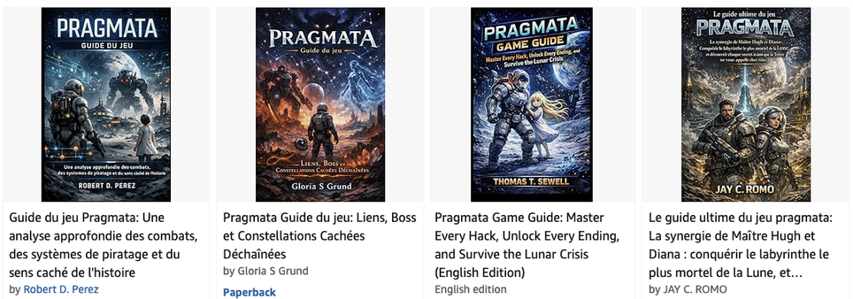 The covers of the Pragmata "guides" have a very specific style. Many discussion participants believe that not only the images, but also the text for such "books" was generated using artificial intelligence.