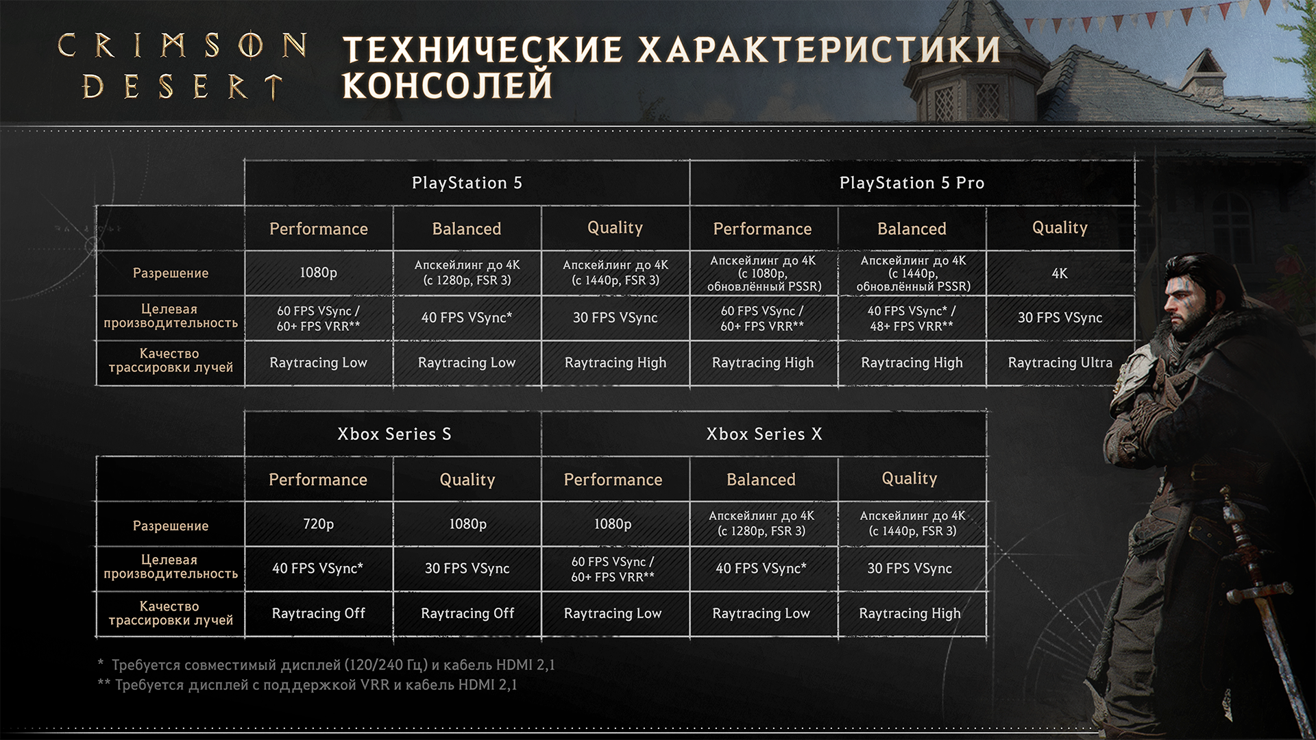 Shortly before release, the authors of Crimson Desert published extended system requirements. A Russian-language version of the announcement was published in the game's Steam community.