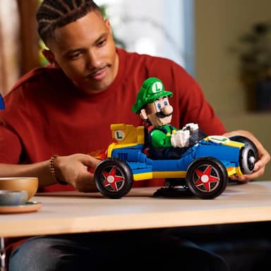 With its help, you can assemble a figure of Mario's brother with a movable head and arms, who sits confidently behind the wheel of the first large-scale model of the Mach 8 kart in history.