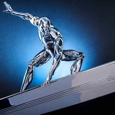 Naturally, the Silver Surfer wouldn't be complete without his signature board. With a sleek silhouette and electroplated finish, the 39cm board attaches to the character's feet with magnets, and the design allows for magnet position adjustment.