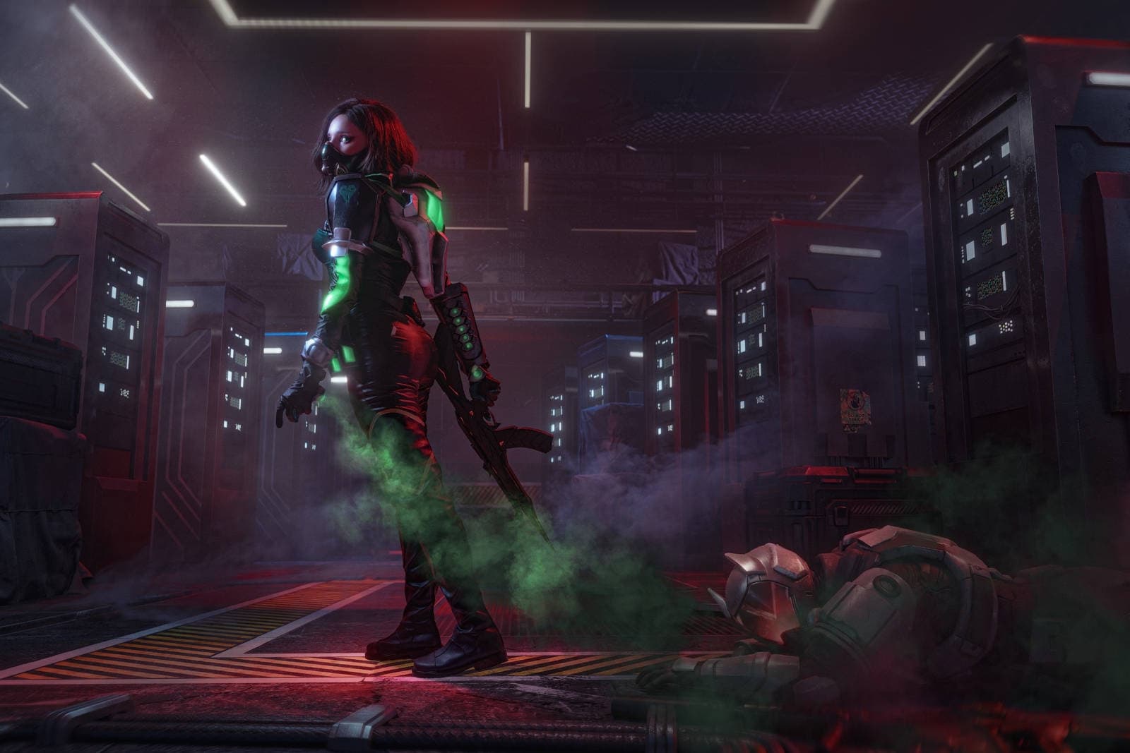 Model Accola transferred to the universe of the shooter Valorant and once again transformed into Viper, who prefers to establish control over the battlefield with the help of toxic gas-emitting devices and limit the visibility of opponents.