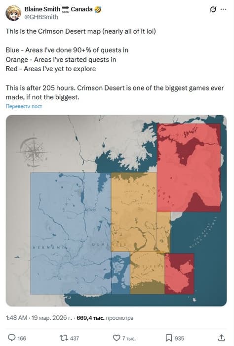 It is believed that a complete playthrough of the game may take 300–400 hours, which for many is closer to a full-time job than entertainment. Areas where more than 90% of activities have been completed make up only a small part of the map, the rest being "unfinished" quests and unexplored zones.